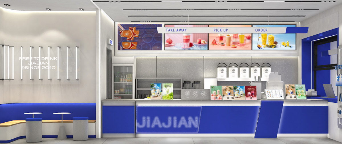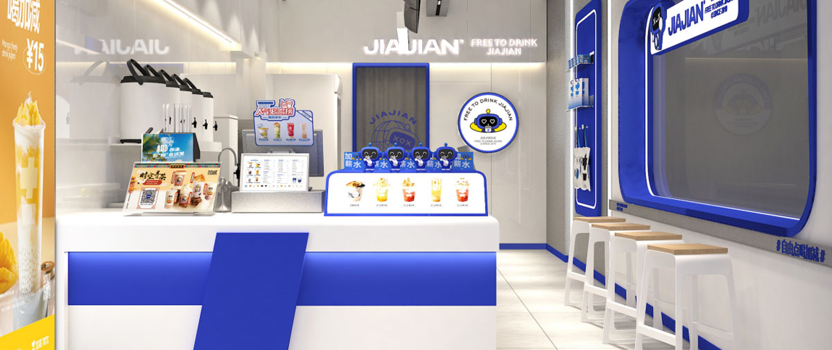 AGGAME·(中国区)先后进行4次门店形象升级。全新第5代门店形象以简洁的设计风格及多样的装潢理念呈现新概念茶饮品牌风貌。